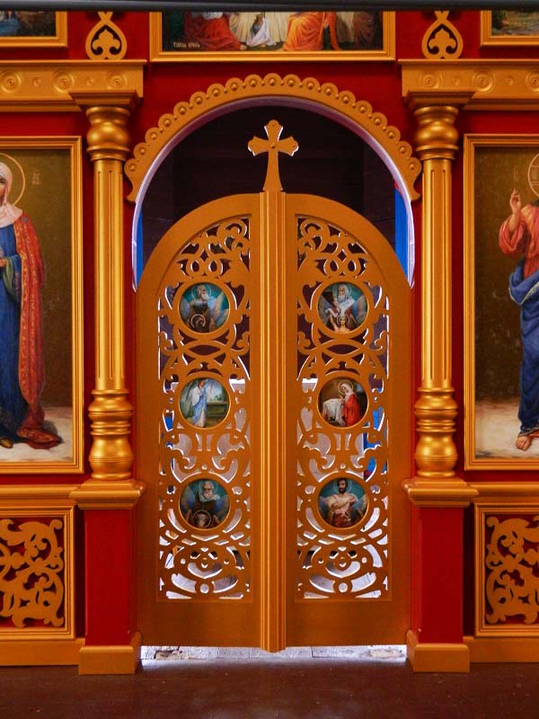 - В первом ярусе иконостаса в центральной части находятся Царские Врата, как раз напротив Престола.