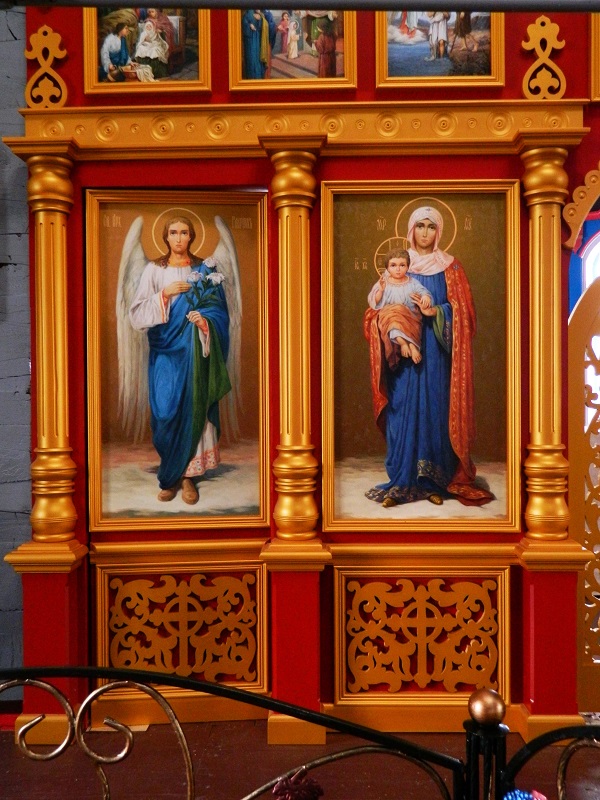 Далее с обеих сторон на иконостасе от Царских Врат, по образу Матери Божьей и празднику находятся иконы наиболее почитаемых в данном храме святых или священных событий.